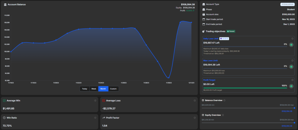 However, FundingPips offers traders a meticulously designed trading dashboard, facilitating progress tracking, access to trading objectives, and crucial statistics. This feature also enhances risk management for a more seamless trading experience.