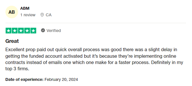 The first comment shows the client expressing satisfaction with the excellent proprietary trading experience and prompt payouts. Overall, they found the process to be smooth and commendable. However, they noted a minor delay in activating the funded account, which was attributed to FXIFY’s implementation of online contracts over emails. While this transition caused a slight delay initially, the client acknowledged its potential for expediting future processes. Despite this hiccup, FXIFY secured a position among the client’s top three preferred firms.