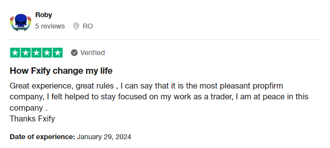 The commenter highlighted and described FXIFY’s services as a great experience, praising the company for its excellent rules and policies. They went on to label FXIFY as the most pleasant proprietary trading firm they’ve encountered. The client appreciated feeling supported in maintaining focus on their work as a trader, expressing a sense of peace within the company.
